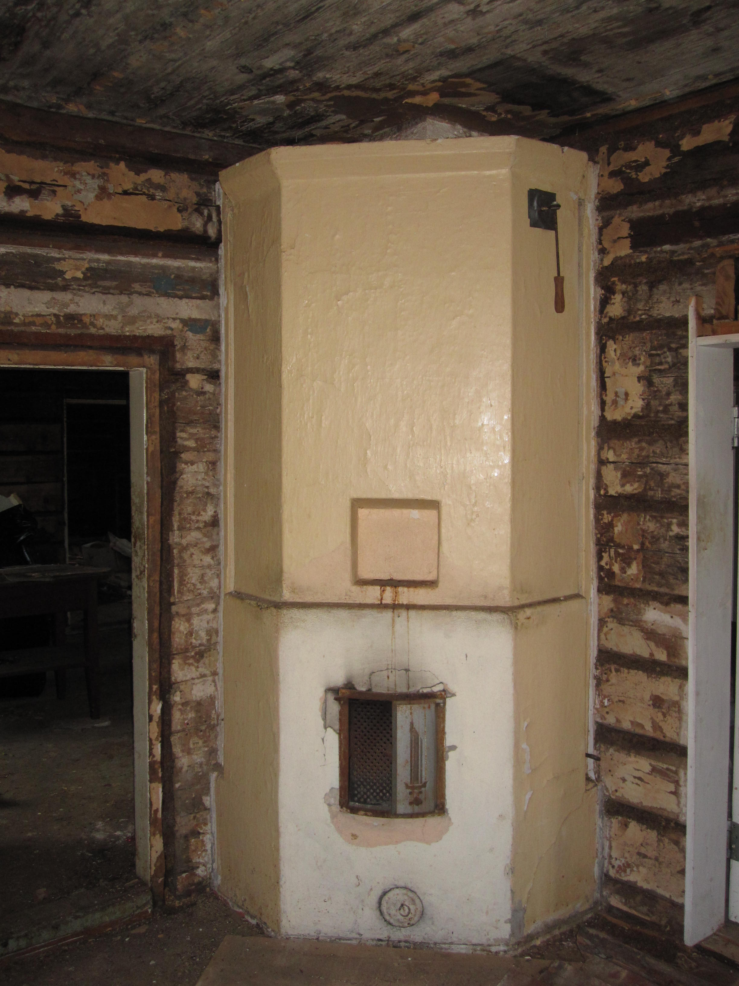 Taksvärkkiläinen uunin purussa