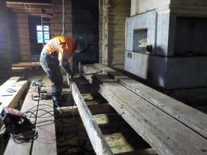 Pirtin lattialankkujen puhdistusta