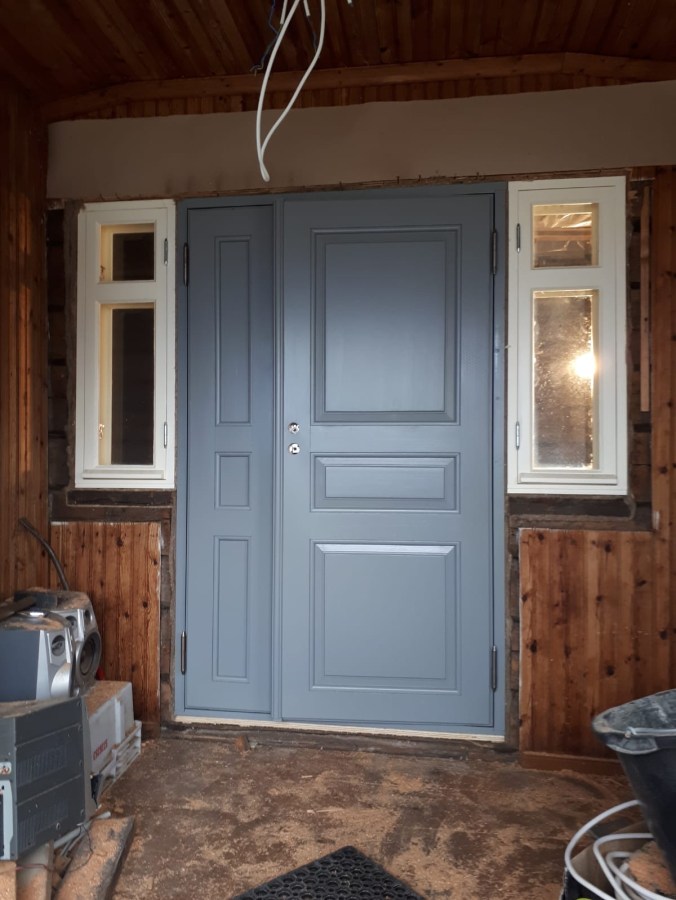 Hieno uusi ovi 🙂 Tuohon vielä ikkunat molemmille puolille, niin tullee hyvä!